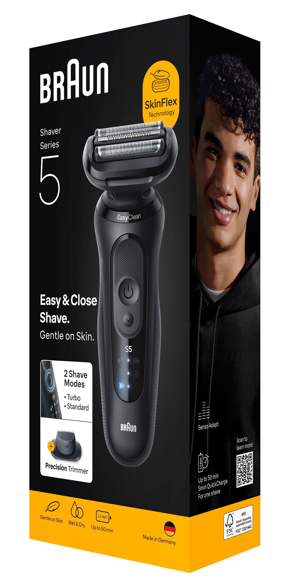 -Легкое и быстрое бритье. Электробритва Braun Series 5 обеспечивает легкое и быстрое бритье, мягкое к коже.