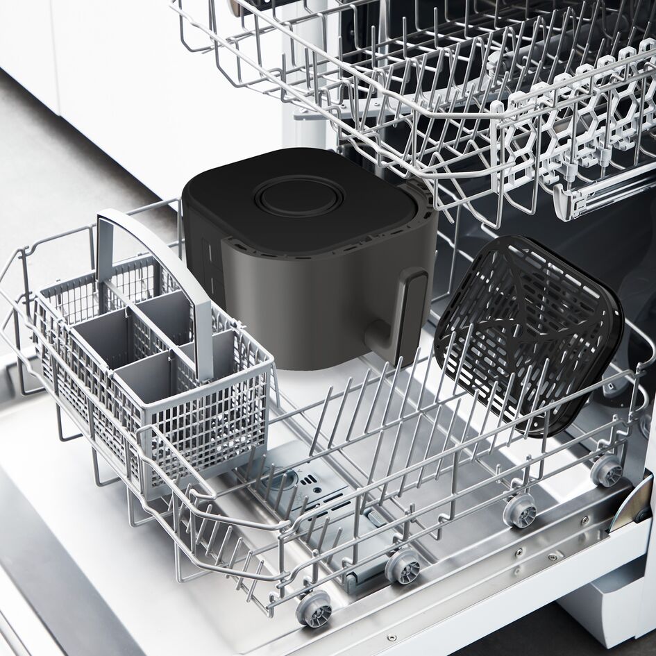 Корзину с антипригарным покрытием можно мыть в посудомоечной машине – меньше хлопот после приготовления.