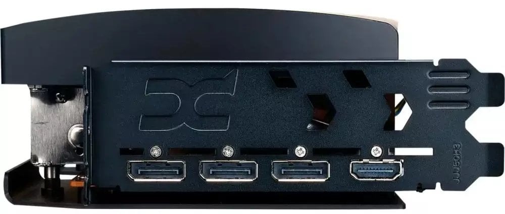Набор из 7 никелированных медных тепловых трубок расположен плотно над печатной платой, чтобы быстрее и эффективнее переносить тепло от графического процессора и памяти VRAM в систему охлаждения.