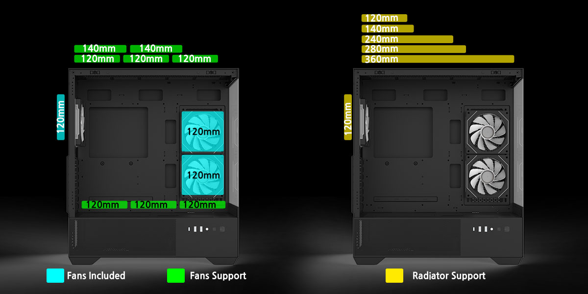Предустановленные три ARGB вентилятора с Infinity Mirror обеспечивают потрясающие визуальные эффекты. Также в комплекте ARGB/PWM хаб для удобного подключения подсветки и питания.
