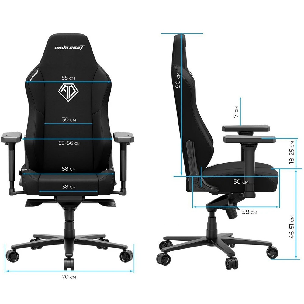 4D-подлокотники позволяют регулировать их положение в четырех направлениях, а спинка откидывается от 90° до 160° для удобного положения. Подходит для людей ростом до 200 см и весом до 150 кг, обеспечивая идеальную посадку.