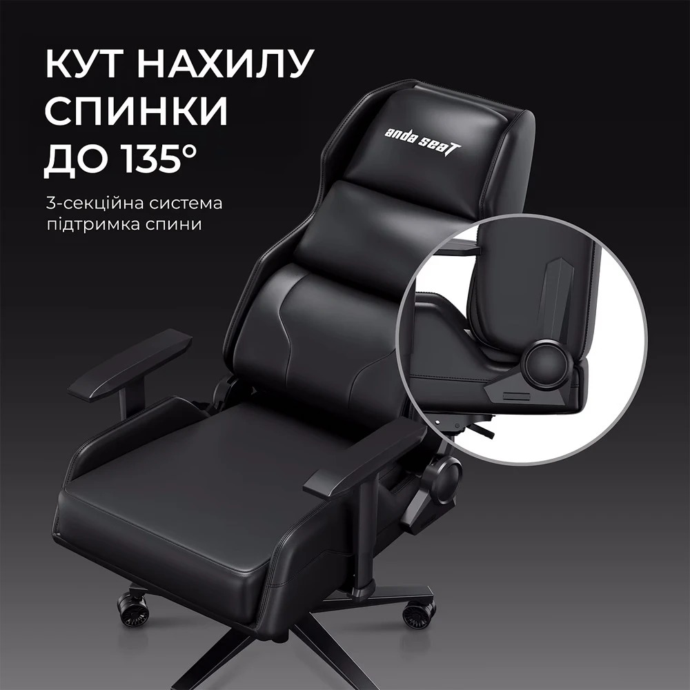 Кресло обито премиальной экокожией, устойчивой к царапинам, легко чистится и прошла тест на 30 000 циклов износа. Эргономика модели включает в себя экстра-высокую спинку высотой 800 мм с 3-секционной системой поддержки для поясницы, плеч и головы, а также функцию регулируемого наклона до 135° для идеального положения как для игры, так и для отдыха. Вся эта конструкция базируется на надежном внутреннем каркасе из углеродистой стали, что гарантирует долговечность и стойкость.