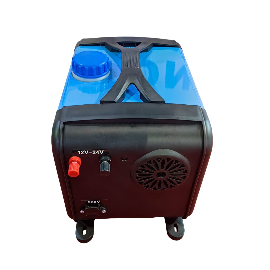 Переносный автономный обогреватель, упакованный в компактный корпус, готов к мгновенному использованию. Регулируемая мощность этого обогревателя достигает 5.0 кВт. Устройство функционирует на дизельном топливе и может подключаться как к обычной сети 220В, так и к источнику постоянного тока (аккумулятор) с напряжением 12В или 24В.