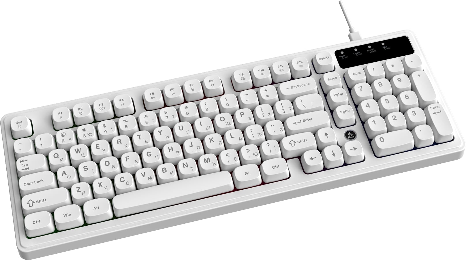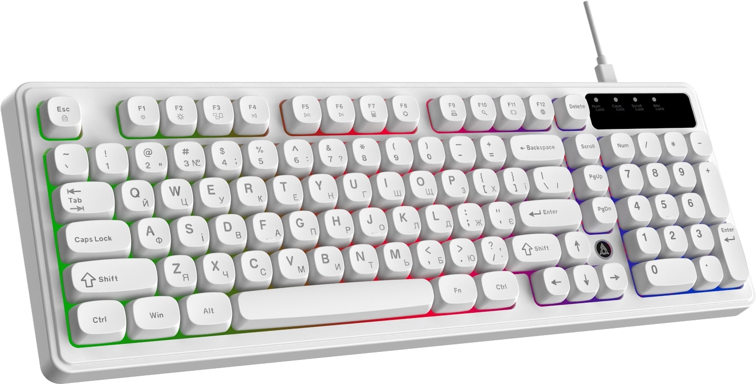 Мембранный механизм клавиш обеспечивает мягкое нажатие и низкий уровень шума, что особенно удобно при длительной печати или ночном использовании. Клавиши из ABS-пластика приятны на ощупь и хорошо подходят для интенсивной ежедневной эксплуатации.