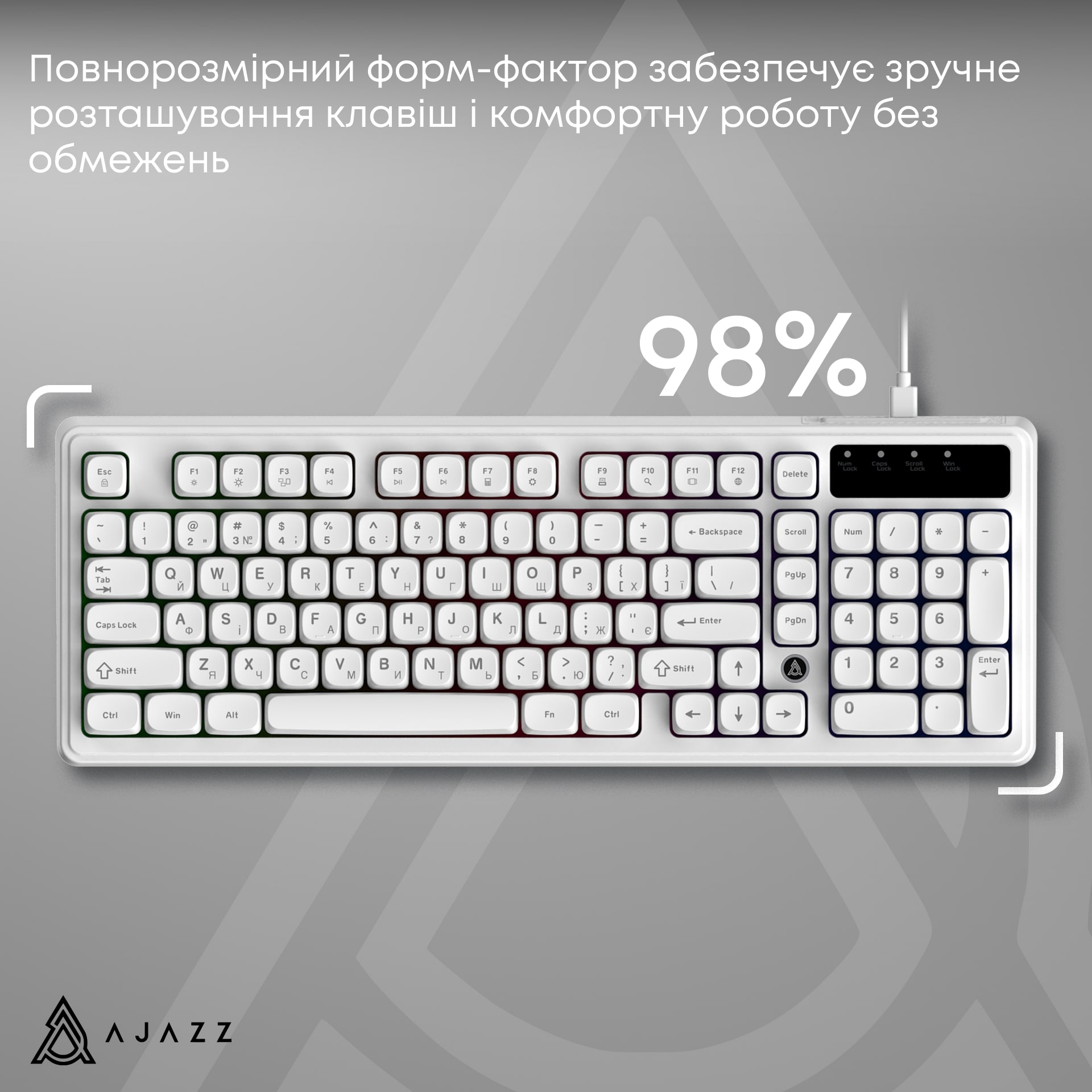 Ajazz AF98 – универсальная проволочная мембранная клавиатура, сочетающая практический форм-фактор, тихую работу и современный дизайн.
