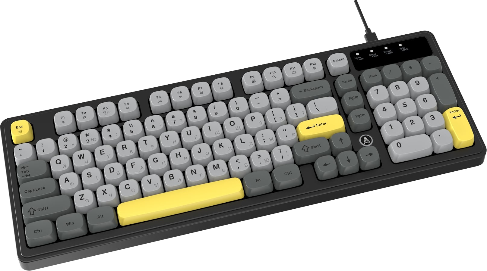 Мембранный механизм клавиш обеспечивает мягкое нажатие и низкий уровень шума, что особенно удобно при длительной печати или ночном использовании. Клавиши из ABS-пластика приятны на ощупь и хорошо подходят для интенсивной ежедневной эксплуатации.