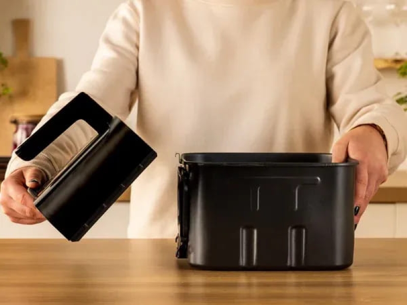 Для ухода и хранения реализована система со съемной передней панелью и ручкой, что упрощает мойку и позволяет экономить место. Крышка для хранения превращает чашу в емкость, которую можно поместить в холодильник. Также отмечена экономия до 70 процентов электроэнергии и поддержка приложения My Tefal с неограниченным количеством рецептов.