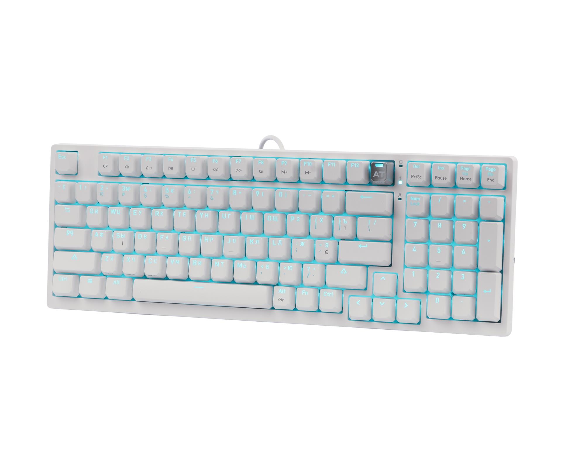 98-клавишная компактная клавиатура. 2-зонный компактный дизайн обеспечивает функциональность, эквивалентную полноразмерной клавиатуре, минимизируя использование рабочего пространства.