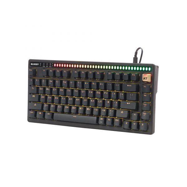 Первая игровая клавиатура Bloody с уникальной RGB-подсветкой, реагирующей на голос. Компактный формат и эффективные механические переключатели в эксклюзивном дизайне.