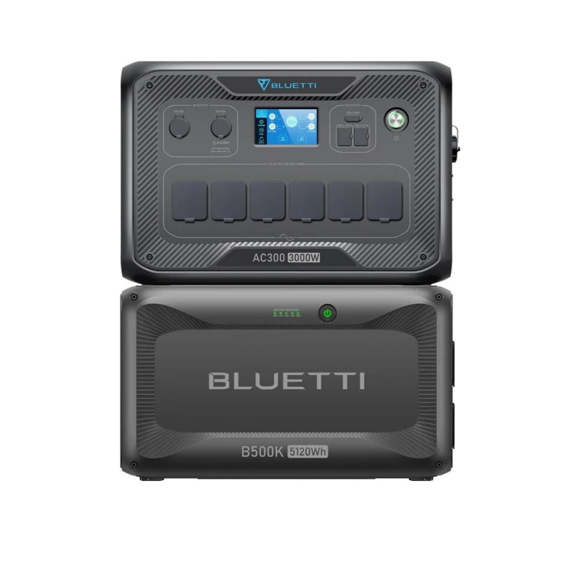BLUETTI AC300 + battery module B500K – это модульная система питания, где инверторный блок AC300 работает только вместе с внешней батареей.