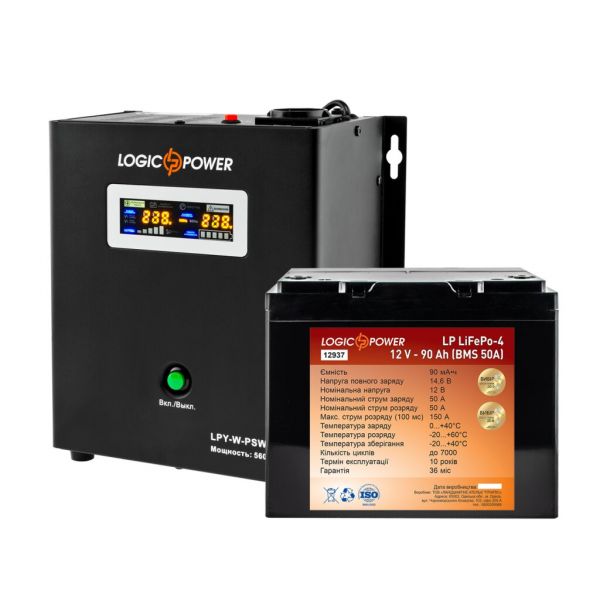Комплект ИБП Logicpower LPY-W-PSW-800VA+(560Вт)5A/15A с правильной синусоидой 12В + Аккумулятор LP LiFePO4 12V - 90 Ah (BMS 50A) специально подобран для обеспечения бесперебойного питания электрических газовых котлов, систем видеонаблюдения, компьютерной техники и других устройств, которые работают в режиме 24/7/365.