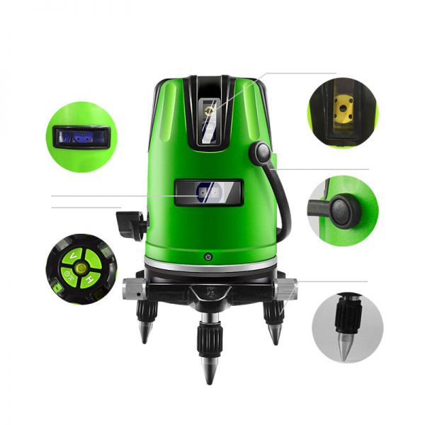 Самонивелирующийся лазерный уровень (360°, 5 линий, 6 точек). Пыленепроницаемая резиновая сенсорная клавиатура.