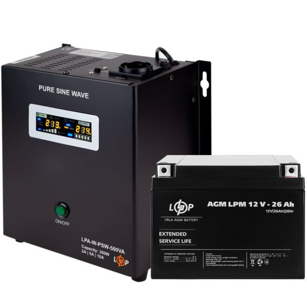 Комплект ИБП Logicpower LPA-W-PSW-500VA(350Вт)2A/5A/10A с правильной синусоидой 12В + Аккумулятор AGM LPM 12V - 26 Ah специально подобран для обеспечения бесперебойного питания электрических газовых котлов, систем видеонаблюдения, компьютерной техники и других устройств, которые работают в режиме 24/7/365. ИБП (мощность 500/350 VA/W) с правильной синусоидой выполняет функции стабилизатора напряжения (на входе - 140-275V, на выходе - 220±10%). ИБП и аккумуляторная батарея надежно защищены от коротких замыканий и перегрузок.