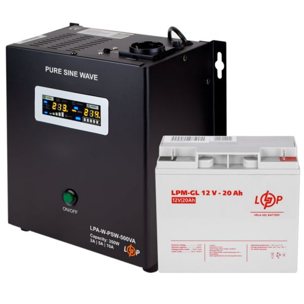 Комплект ИБП Logicpower LPA-W-PSW-500VA(350Вт)2A/5A/10A с правильной синусоидой 12В + Аккумулятор LPM-GL 12V - 20 Ah специально подобран для обеспечения бесперебойного питания электрических газовых котлов, систем видеонаблюдения, компьютерной техники и других устройств, которые работают в режиме 24/7/365. ИБП (мощность 500/350 VA/W) с правильной синусоидой выполняет функции стабилизатора напряжения (на входе - 140-275V, на выходе - 220±10%). ИБП и аккумуляторная батарея надежно защищены от коротких замыканий и перегрузок. LPA-W-PSW-500VA(350Вт)2A/5A/10A в металлическом корпусе имеет габаритные размеры 220х150х270 мм. Тип подключения к сети – евровилка, тип подключения нагрузки – евророзетка. На внешней стороне корпуса LСD экран, где отображаются параметры работы. Емкость батареи – 20 ампер/часов. Вес – 5.7 кг. Габаритные размеры: 180х75х166. Гарантия – 24 месяцев