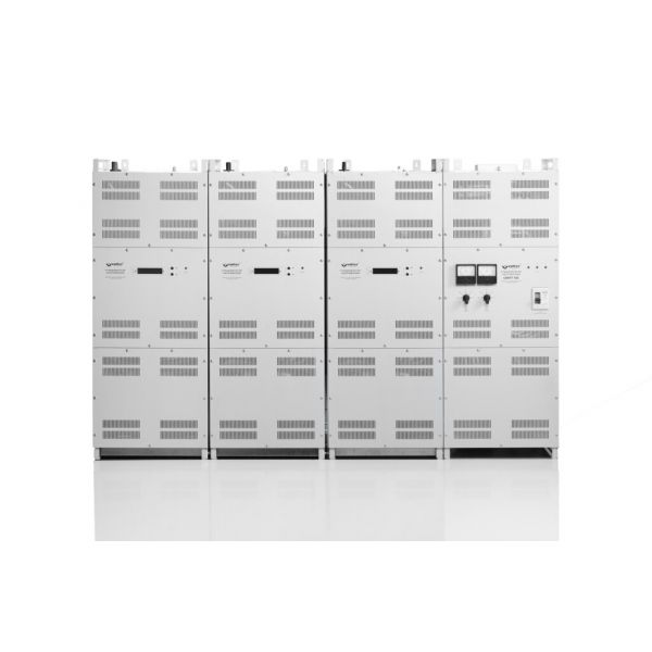 Трёхфазный стабилизатор напряжения Volter (СНПТТ) на 150 кВт состоит из четырех блоков – трех блоков фазной стабилизации и одного блока коммутции.