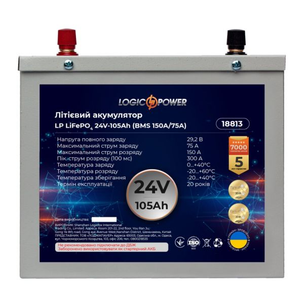 Характеристики Аккумулятор LP LiFePO4 24V - 105 Ah (BMS 150A/75А) металл
