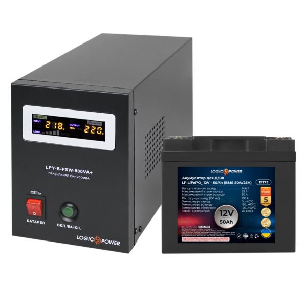 Комплект резервного питания LP (LogicPower) ИБП + литиевая (LiFePO4) батарея (UPS B800 + АКБ LiFePO4 750W)