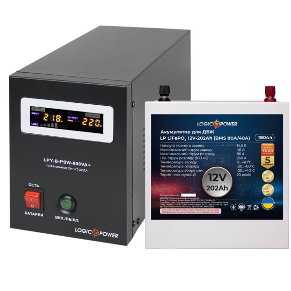 Комплект резервного питания LP (LogicPower) ИБП + литиевая (LiFePO4) батарея (UPS B800 + АКБ LiFePO4 2560W)