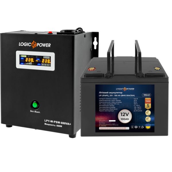Комплект резервного питания для котла LP (LogicPower) ИБП + литиевая (LiFePO4) батарея (UPS W800 + АКБ LiFePO4 1280W)