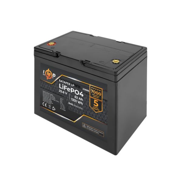Характеристики Аккумулятор LP LiFePO4 24V (25,6V) - 52 Ah (1331Wh) (BMS 80A/40А) пластик