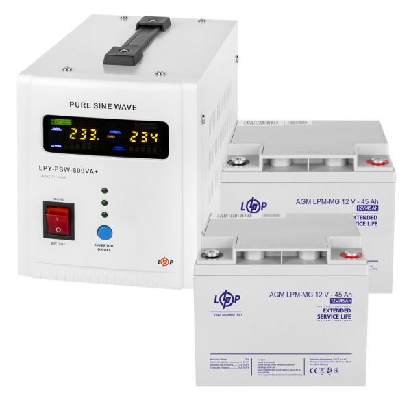 Характеристики Комплект резервного питания LogicPower 800 + мультигелевая батарея 1080 Ватт (UPS 800+ АКБ MG 1080W)