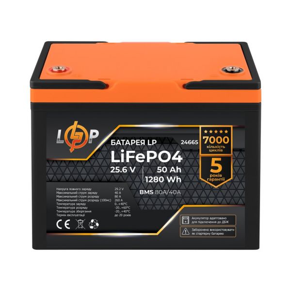 Аккумулятор LP LiFePO4 25,6V - 50 Ah (1280Wh) (BMS 80A/40А) пластик для ИБП