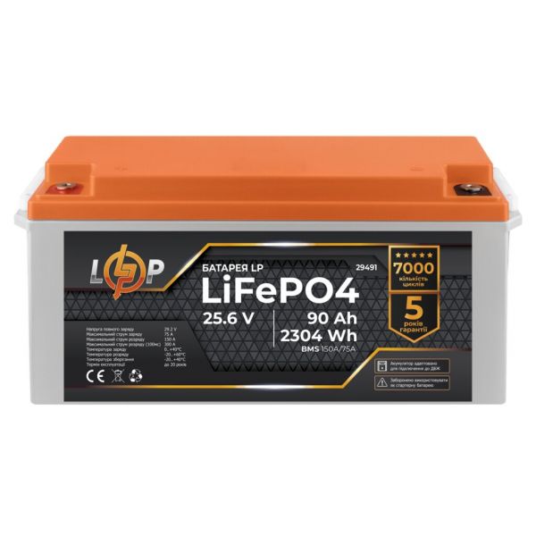 Характеристики Аккумулятор LP LiFePO4 для ИБП 24V (25,6V) - 90 Ah (2304Wh) (BMS 150A/75А) пластик